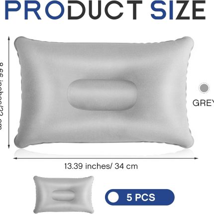 5 Pieces Inflatable Travel Pillow Portable Compact Air Pillow Flocked Fabric Backpacking for Camping Hiking Home Office Sleeping Neck Head Lumbar Support(13.39 x 8.66 Inches,Gray)