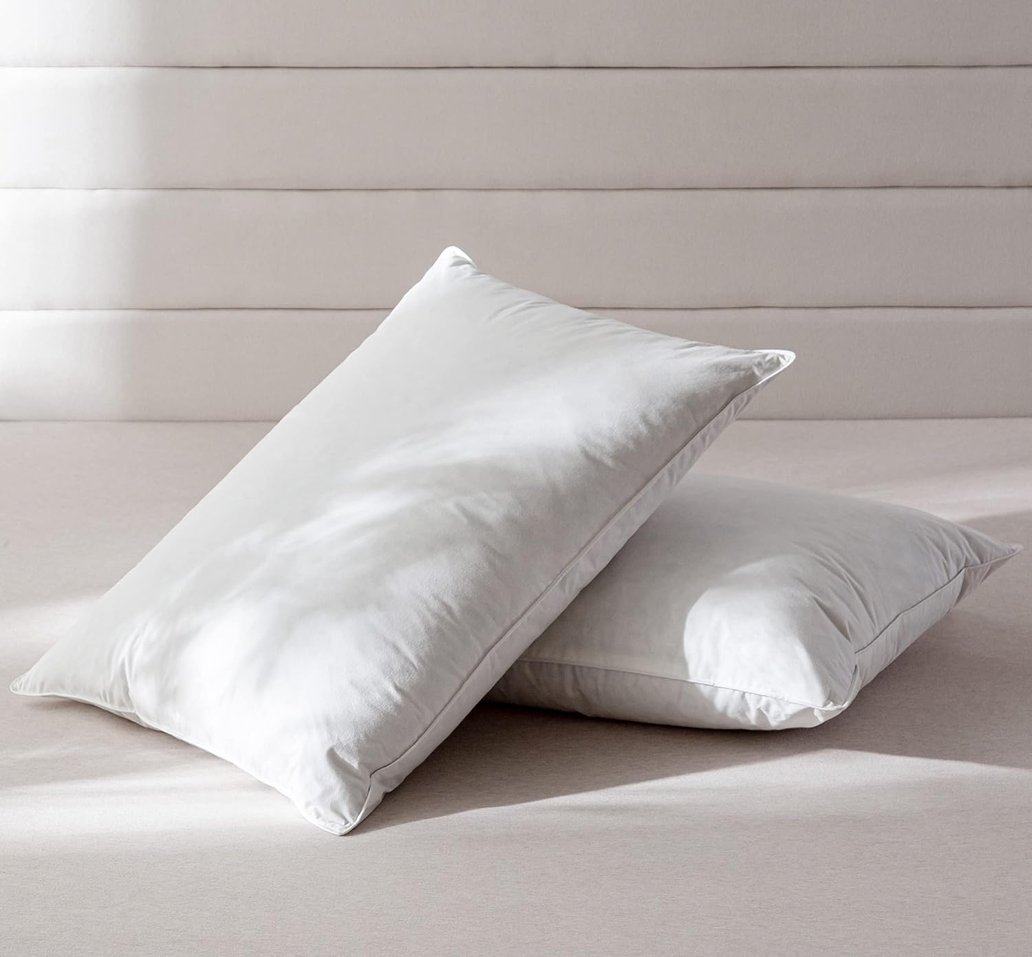 Pack of 2 White Goose Feather and Polyester Bed Pillows King Size- Soft 600 Thread Count 100% Cotton, Medium Firm,Soft Support,White Solid