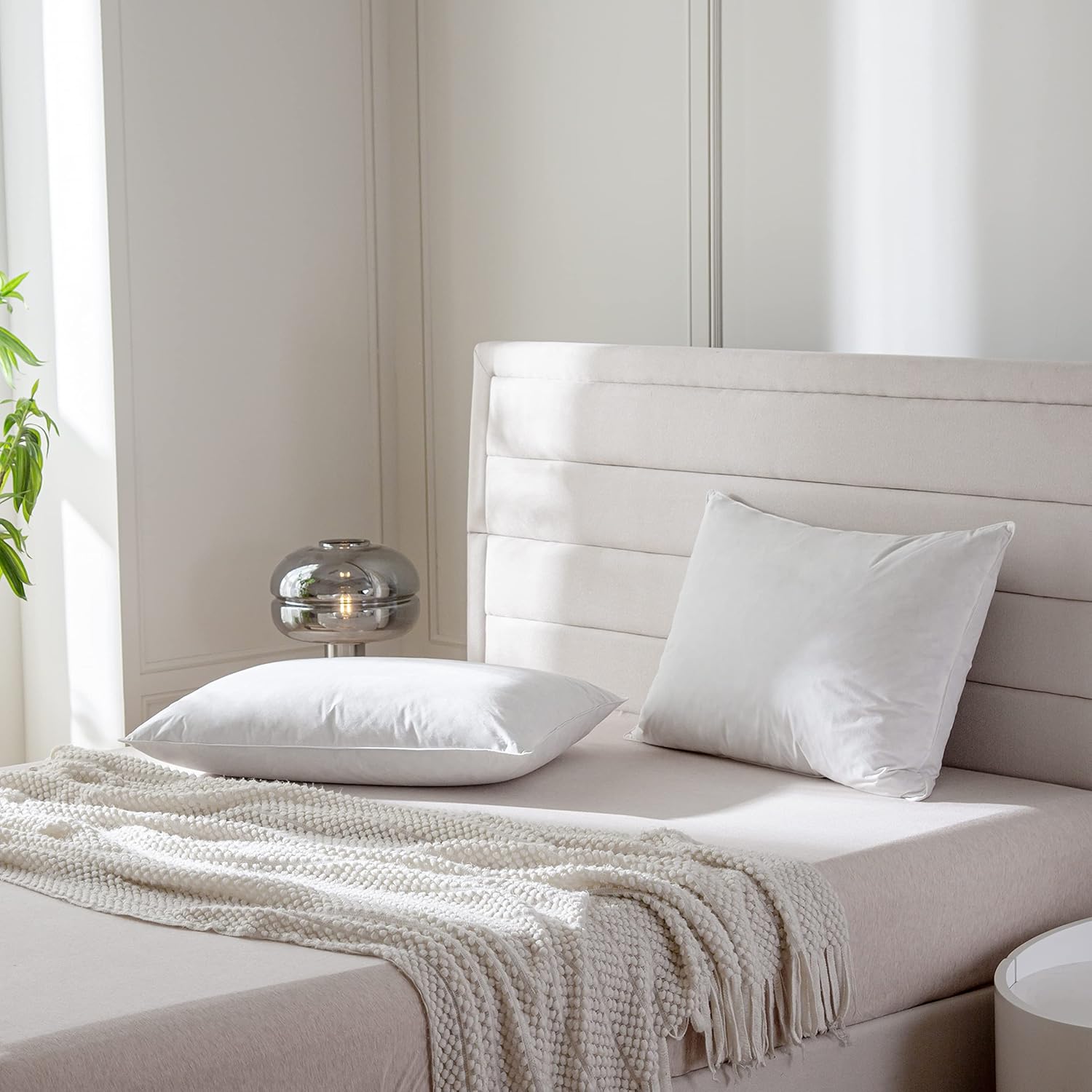 - 【Easy Care】Recommend dry wash. Machine wash is available. Tumble dry on low heat. No iron. No bleach. Our feather down pillow is rolled tightly to be delivered. When you receive it, please flap the pillow and keep it in a place with air circulation. Original fluffy would take several hours.